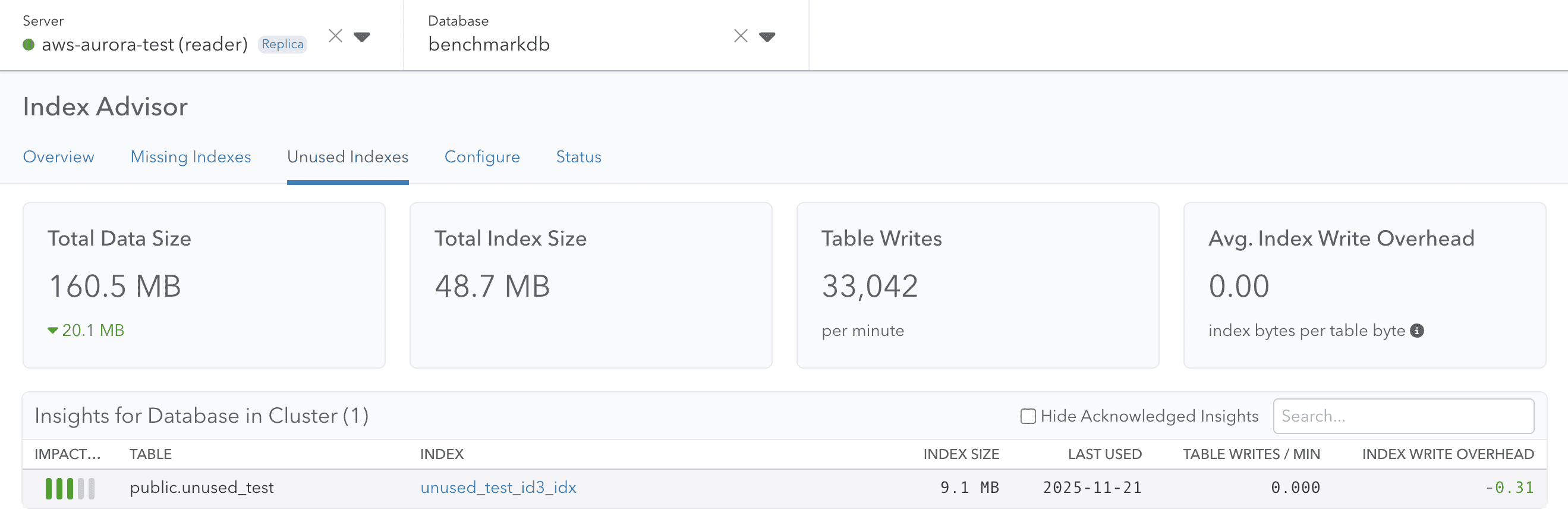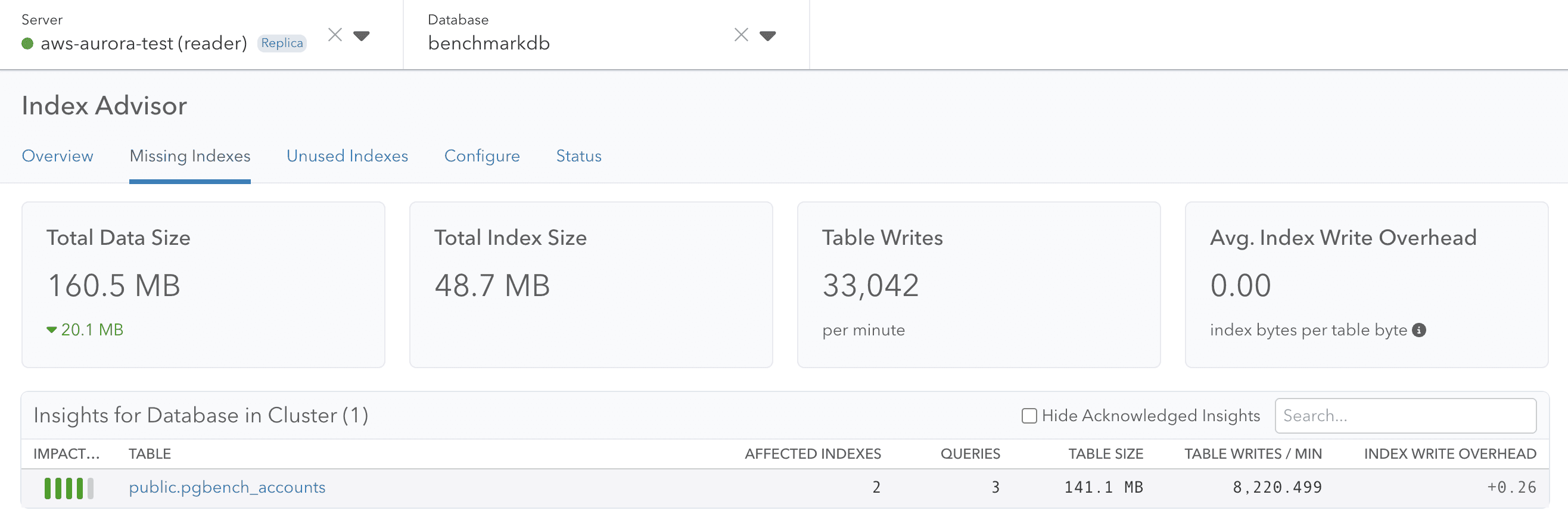 For now we’ve decided to make the primary server the source of truth for all Index Advisor insights. For a standalone server, we treat it like a primary, and there is no real change from before. In the case of a cluster, indexing decisions need to be made on the primary, and thus recommendations happen there.