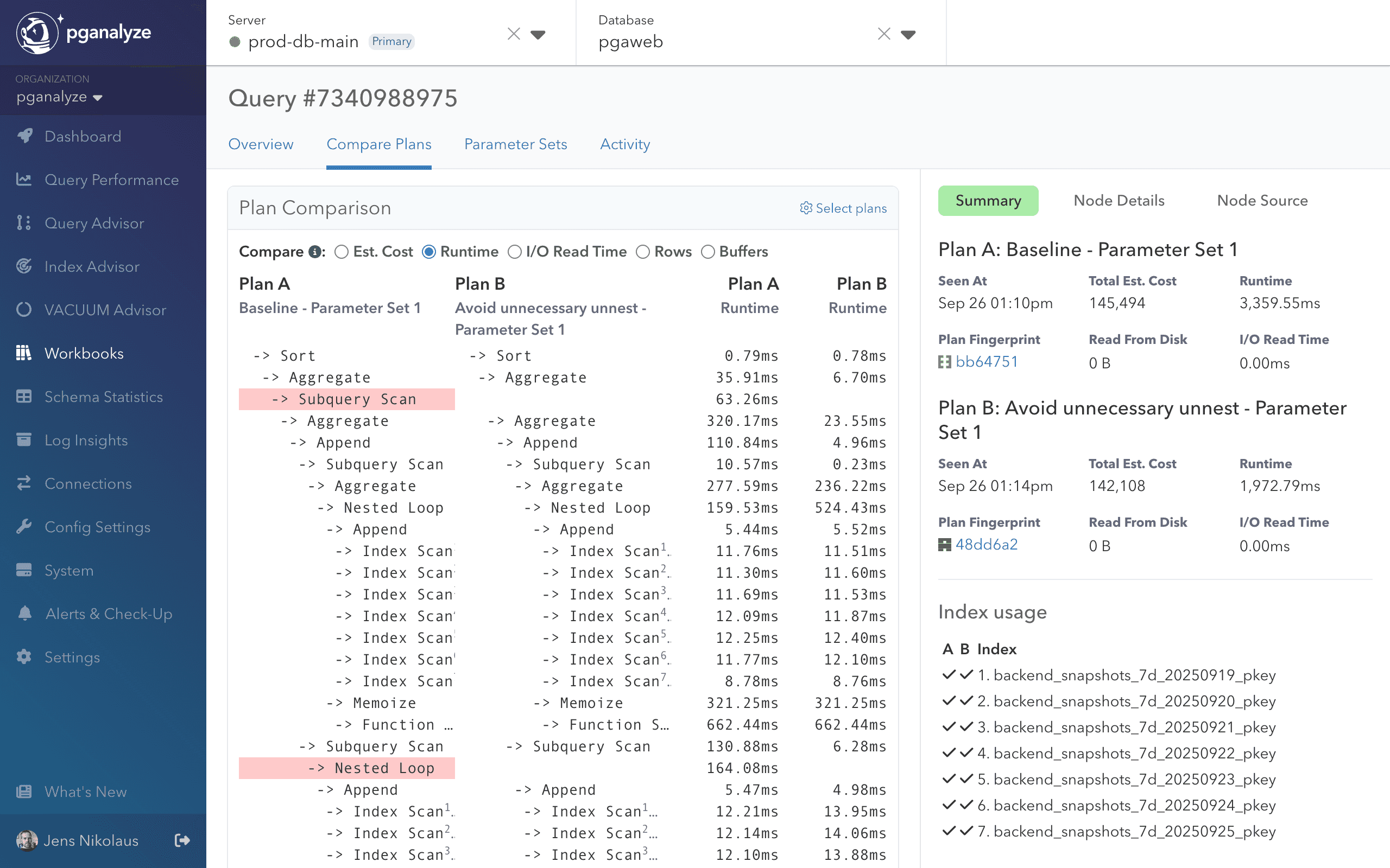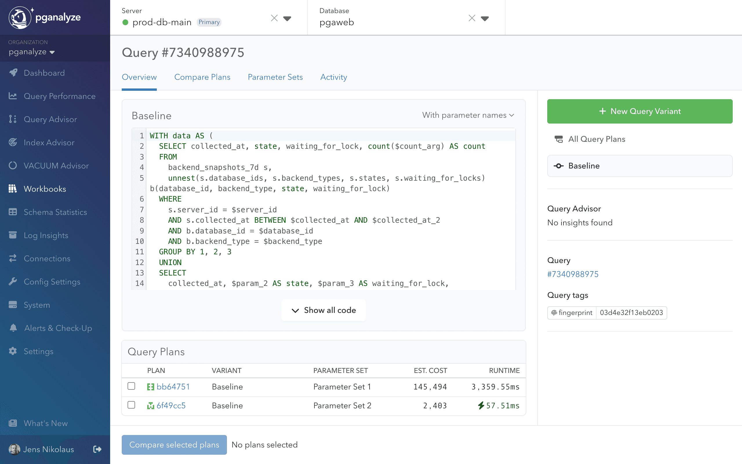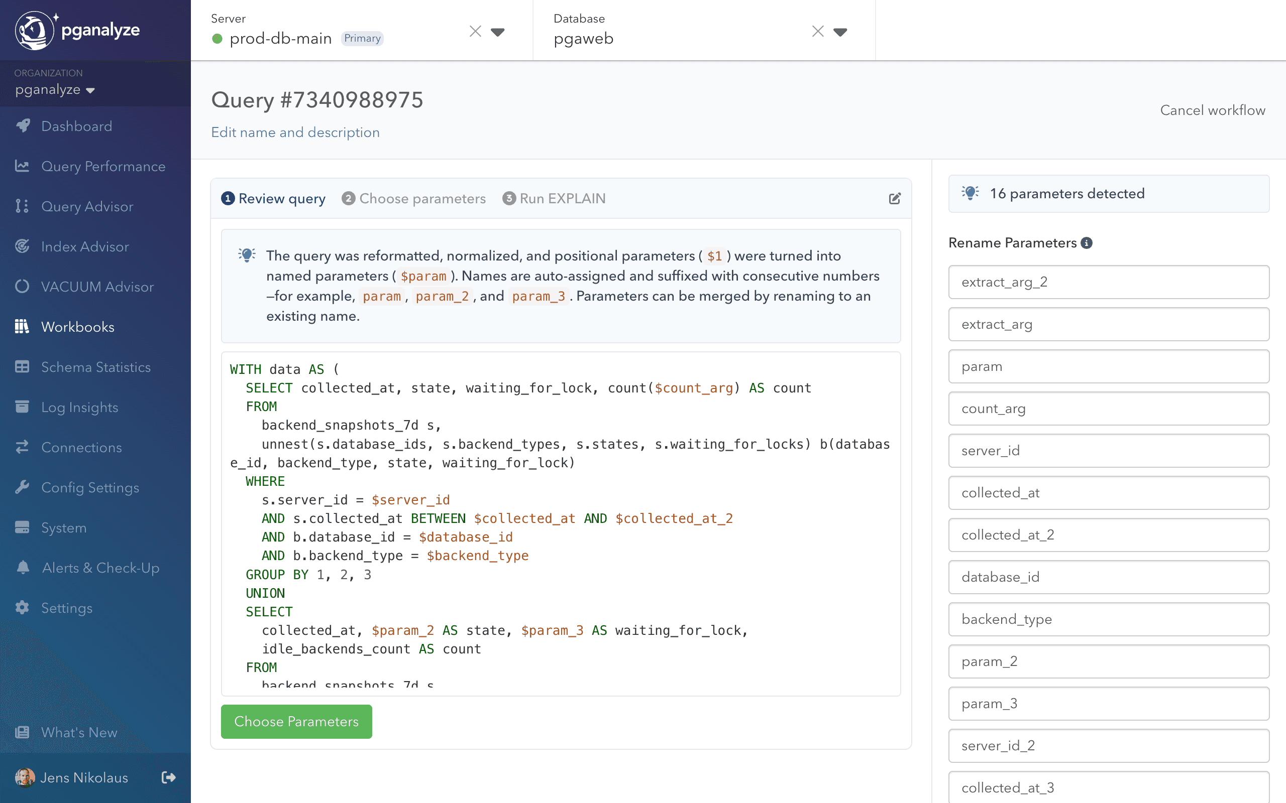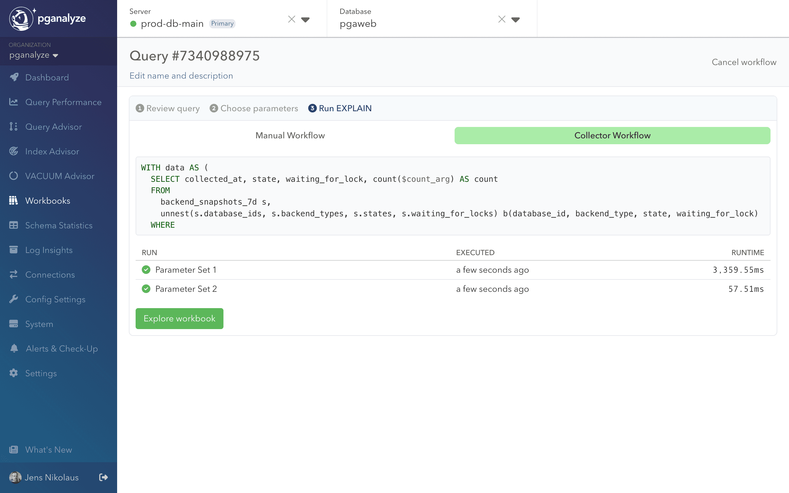 With your parameter sets defined, you can now run EXPLAIN ANALYZE using our collector, or running it manually on your own and pasting the output.