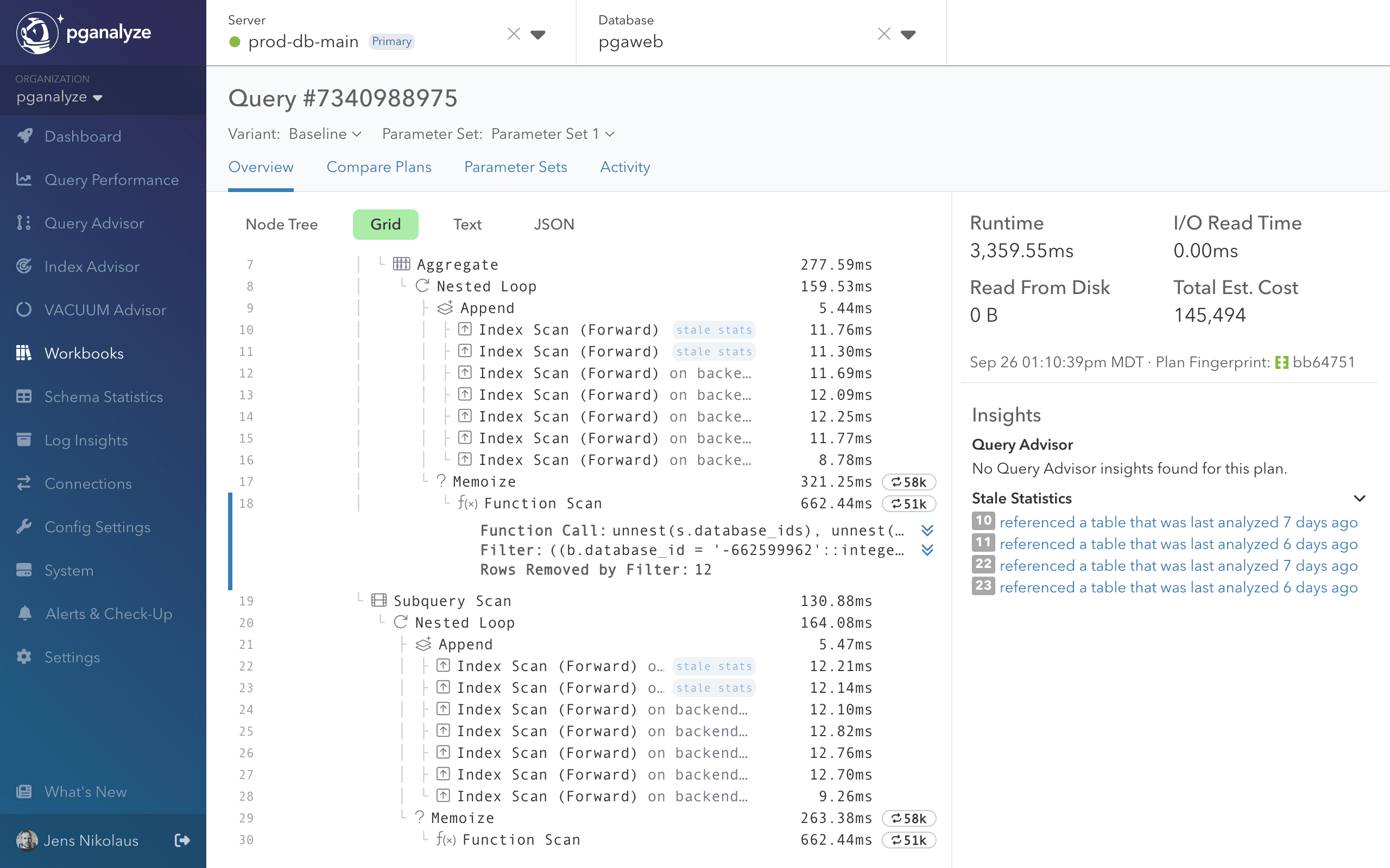 - Review automated EXPLAIN analysis that highlights EXPLAIN insights